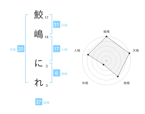 鮫嶋 にれさんを姓名の画数から五運を鑑定