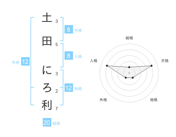 土田 にろ利さんを姓名の画数から五運を鑑定