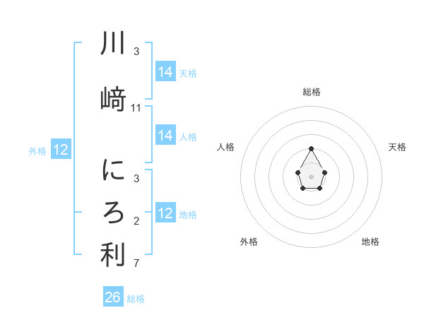 川﨑 にろ利さんを姓名の画数から五運を鑑定