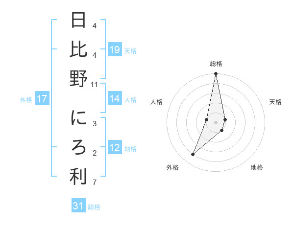 日比野 にろ利さんの総格は31画の5点