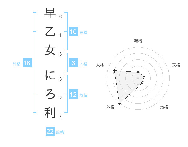 早乙女 にろ利さんを姓名の画数から五運を鑑定