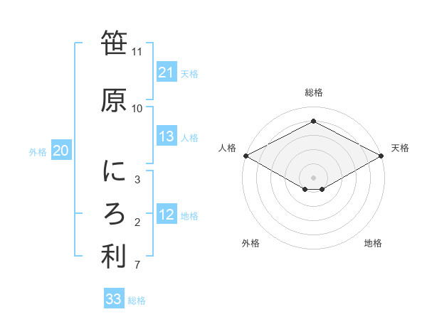 笹原 にろ利さんの天格は21画の5点