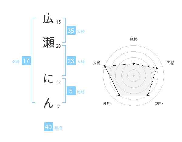 広瀬 にんさんを姓名の画数から五運を鑑定