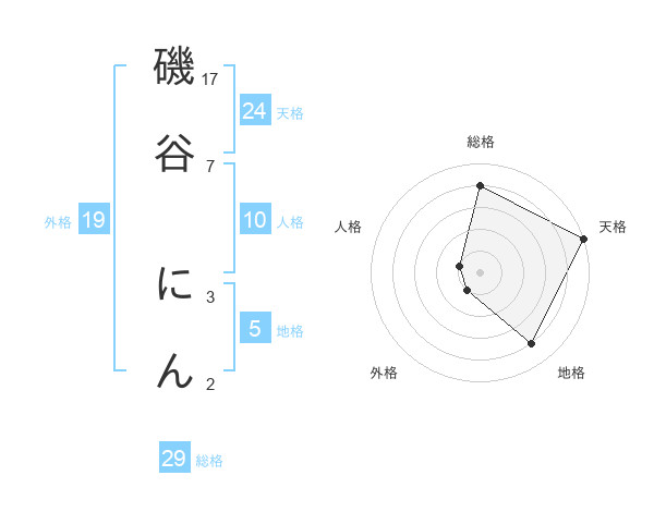 磯谷 にんさんを姓名の画数から五運を鑑定