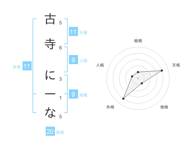 古寺 にーなさんの総格は20画の1点!