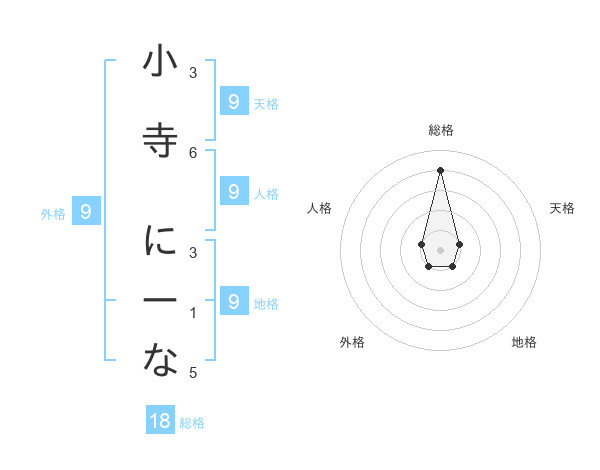 小寺 にーなさんの地格は9画の1点!