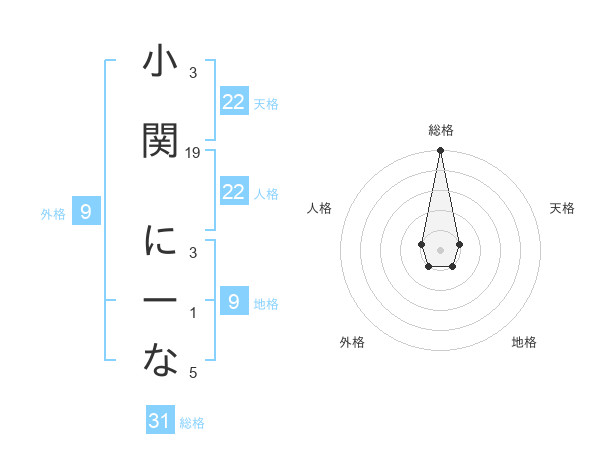 小関 にーなさんの総格は31画の5点!