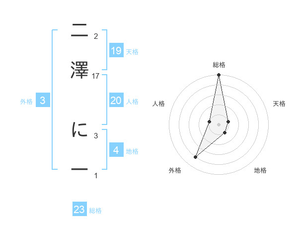 二澤 にーさんの総格は23画の5点!
