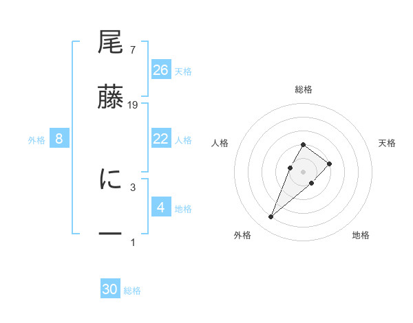 尾藤 にーさんを姓名の画数から五運を鑑定