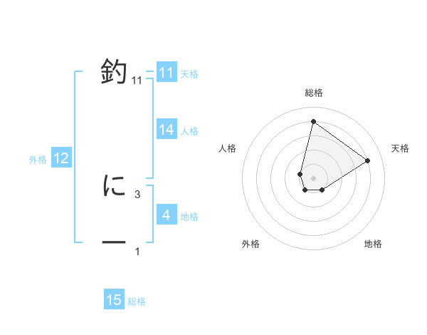 釣 にーさんの総格は15画の4点!