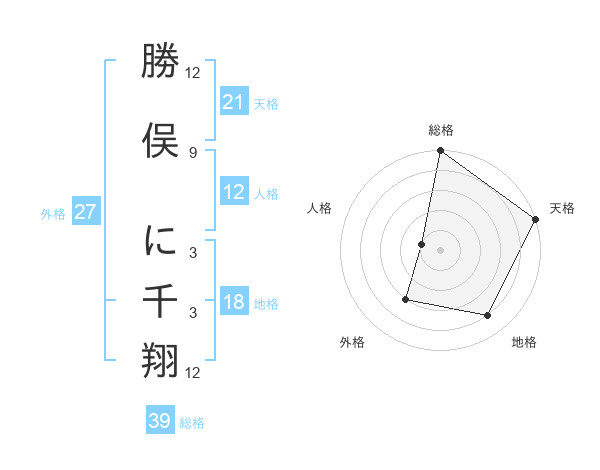 勝俣 に千翔さんの外格は27画の3点!