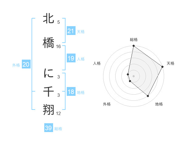 北橋 に千翔さんを姓名の画数から五運を鑑定