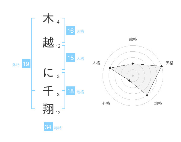 木越 に千翔さんの外格は19画の1点!