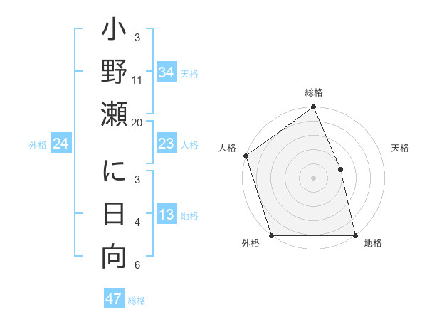 小野瀬 に日向さんを姓名の画数から五運を鑑定