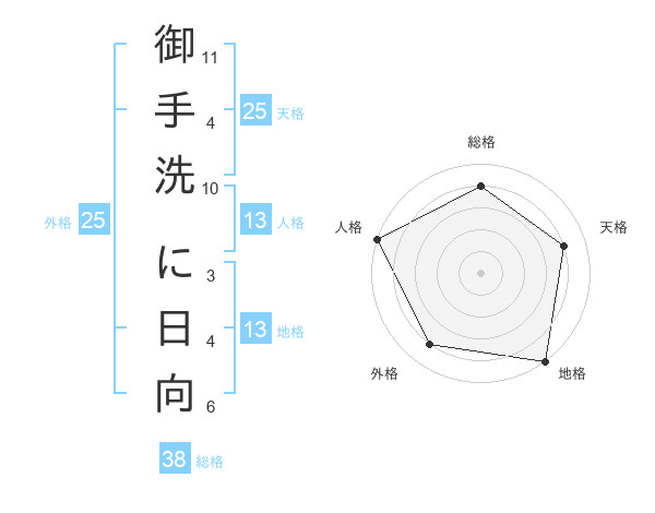 御手洗 に日向さんを姓名の画数から五運を鑑定