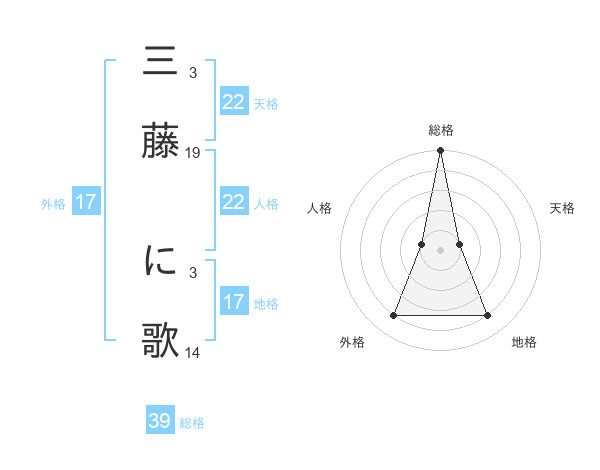 三藤 に歌さんを姓名の画数から五運を鑑定