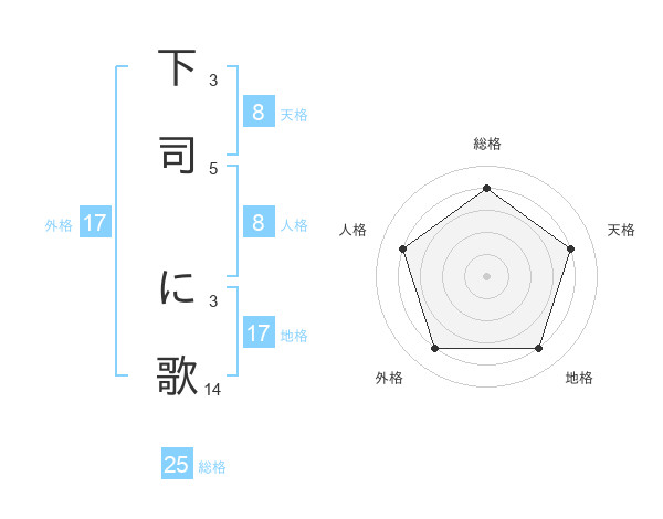 下司 に歌さんを姓名の画数から五運を鑑定