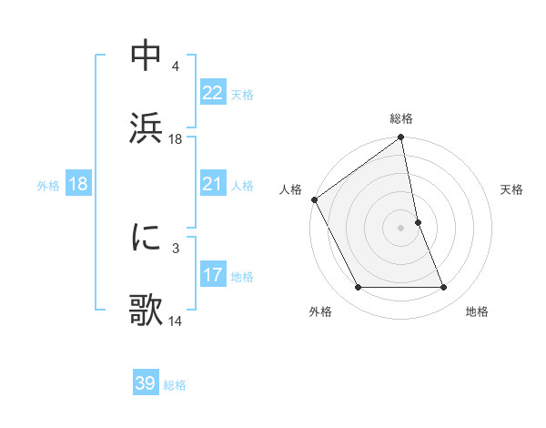 中浜 に歌さんを姓名の画数から五運を鑑定