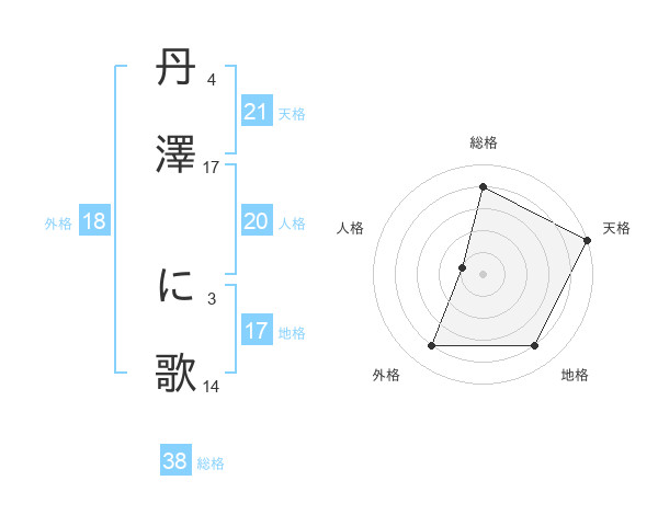 丹澤 に歌さんの総格は38画の4点!