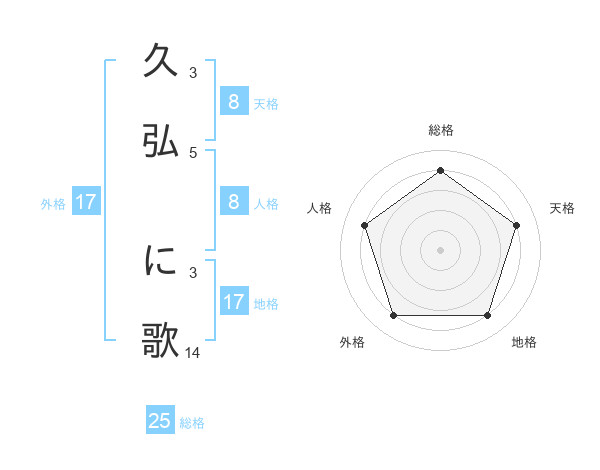 久弘 に歌さんの地格は17画の4点!