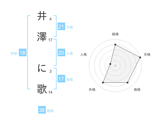 井澤 に歌さんを姓名の画数から五運を鑑定