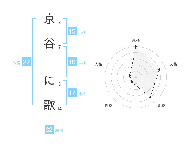 京谷 に歌さんを姓名の画数から五運を鑑定