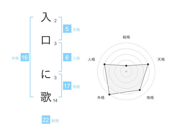 入口 に歌さんの総格は22画の1点!