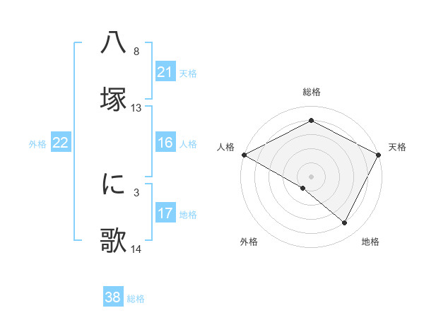 八塚 に歌さんの総格は38画の4点!