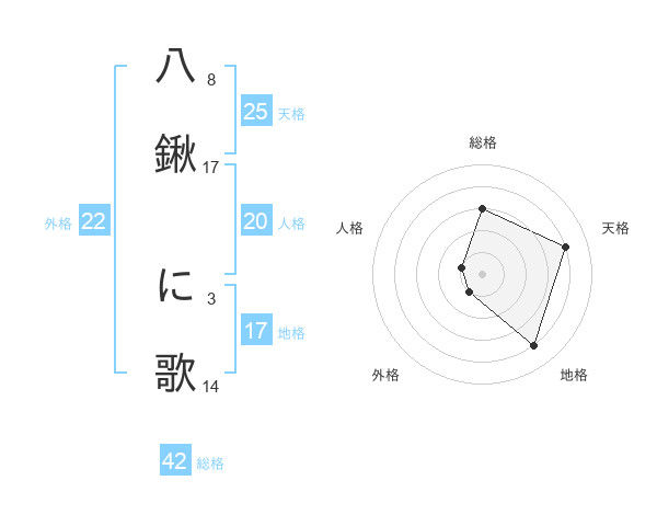 八鍬 に歌さんを姓名の画数から五運を鑑定