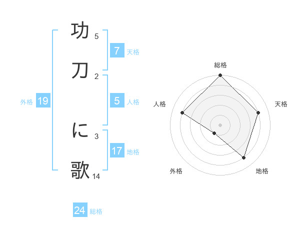 功刀 に歌さんの総格は24画の5点!