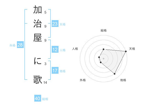 加治屋 に歌さんを姓名の画数から五運を鑑定