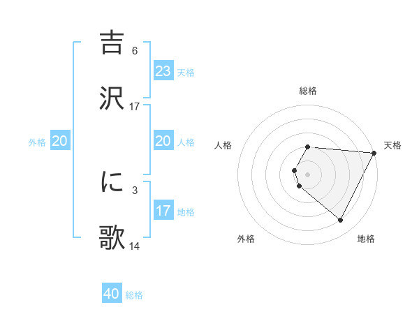 吉沢 に歌さんの天格は23画の5点!
