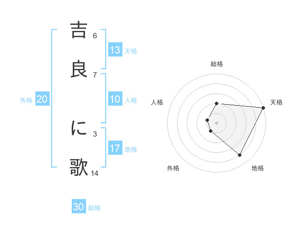 吉良 に歌さんの天格は13画の5点!