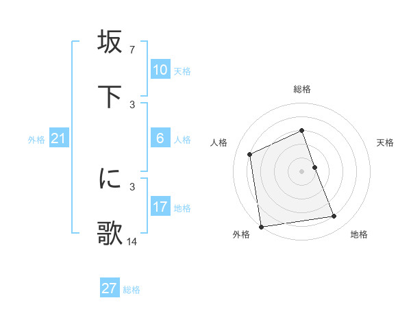 坂下 に歌さんの地格は17画の4点!