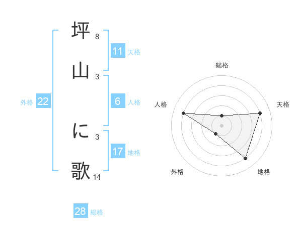 坪山 に歌さんを姓名の画数から五運を鑑定