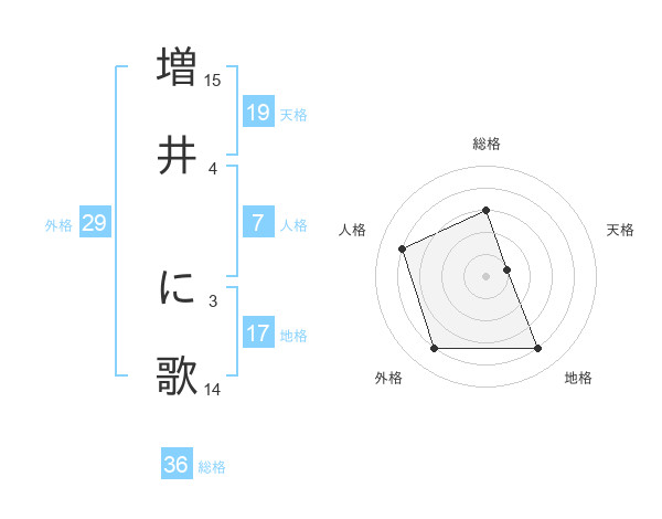 増井 に歌さんを姓名の画数から五運を鑑定