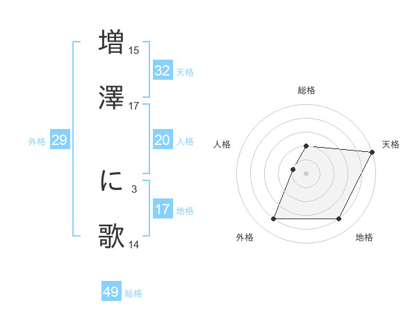 増澤 に歌さんを姓名の画数から五運を鑑定