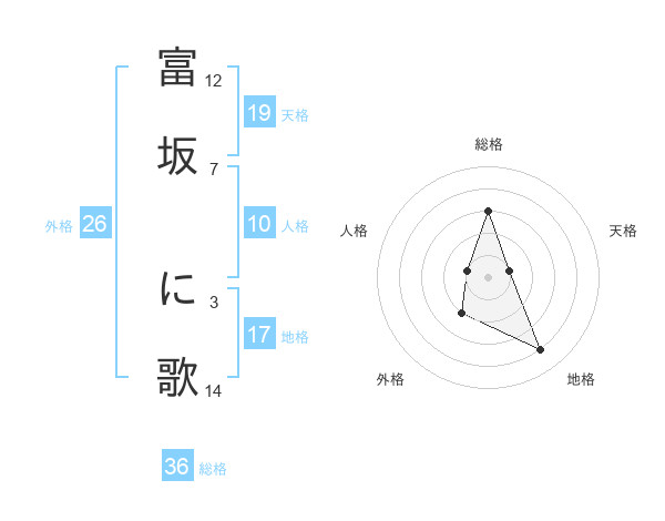 富坂 に歌さんを姓名の画数から五運を鑑定