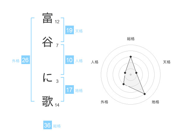 富谷 に歌さんを姓名の画数から五運を鑑定