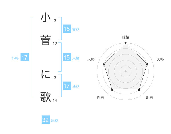 小菅 に歌さんの総格は32画の5点!