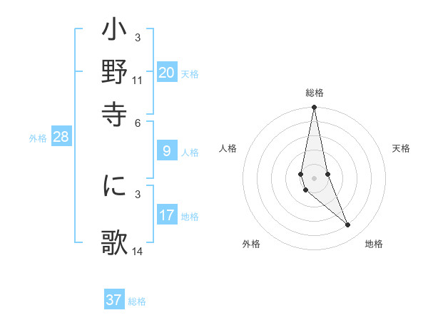 小野寺 に歌さんを姓名の画数から五運を鑑定