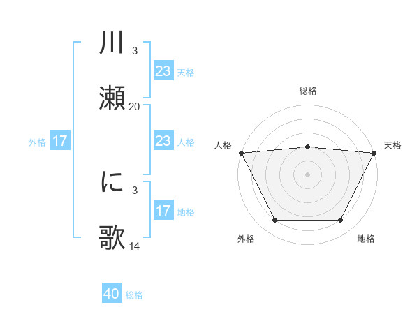 川瀬 に歌さんの天格は23画の5点!