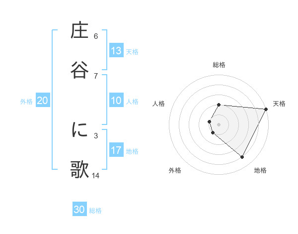 庄谷 に歌さんの天格は13画の5点!