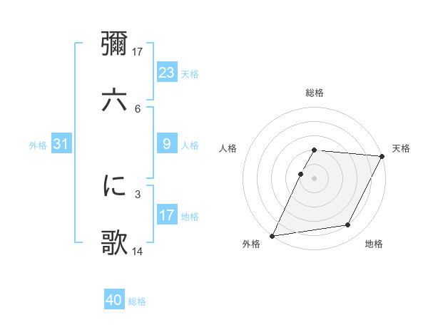 彌六 に歌さんの総格は40画の2点!