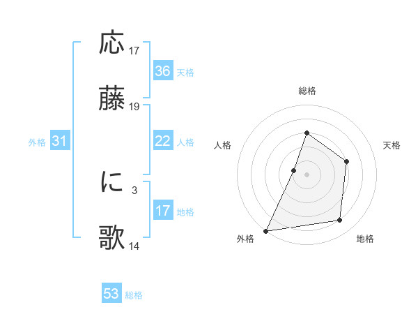 応藤 に歌さんを姓名の画数から五運を鑑定