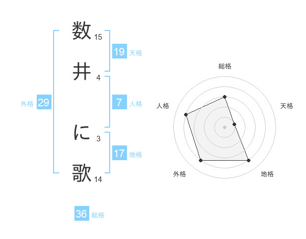 数井 に歌さんを姓名の画数から五運を鑑定
