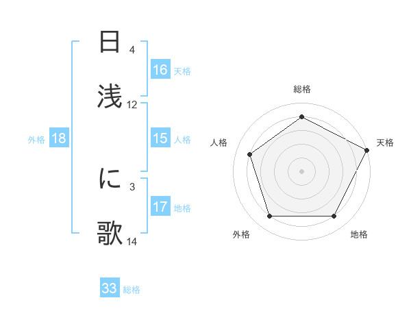 日浅 に歌さんの天格は16画の5点!