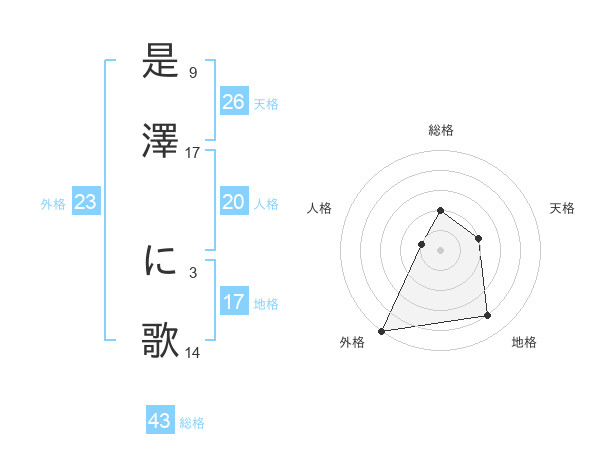 是澤 に歌さんの外格は23画の5点!