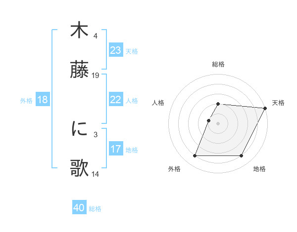 木藤 に歌さんを姓名の画数から五運を鑑定