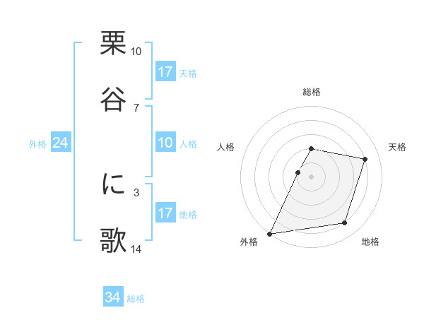 栗谷 に歌さんの地格は17画の4点!